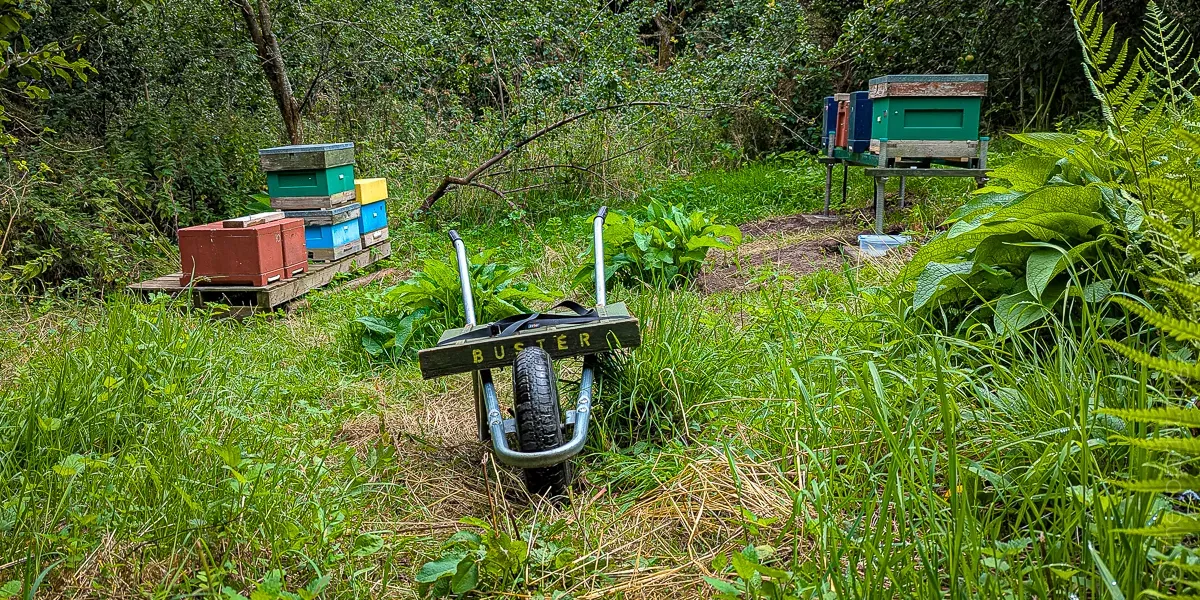 If the weather forecast says “mainly dry” you know it’s likely to rain, probably as you wriggle into your beesuit. This isn’t a problem if you house your bees in a shed.